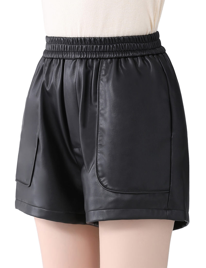 Womens Elastic Waist Loose Shorts Faux Leather Shorts with Pockets
